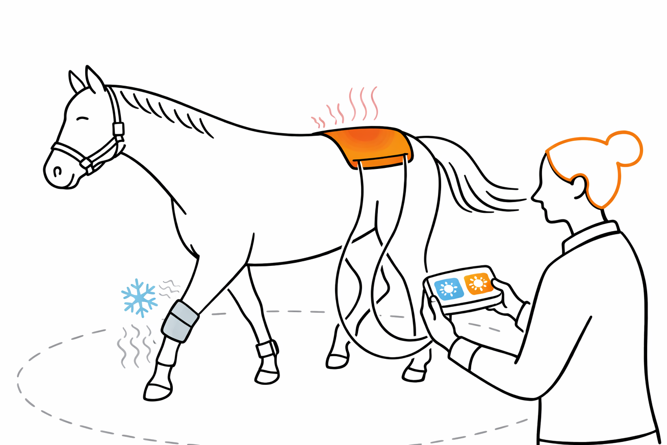 Kryo- und Wärmetherapie werden in unserer Reha gezielt zur Unterstützung von Heilungsprozessen eingesetzt. Kälte wirkt abschwellend und entzündungshemmend, Wärme fördert die Durchblutung, lockert die Muskulatur und verbessert die Beweglichkeit. Für die Wärmeanwendungen nutzen wir Rotlicht, die EquiSpa-Decke sowie eine kombinierte Wärme-/Massagedecke – individuell abgestimmt auf das jeweilige Pferd und den Reha-Zustand.