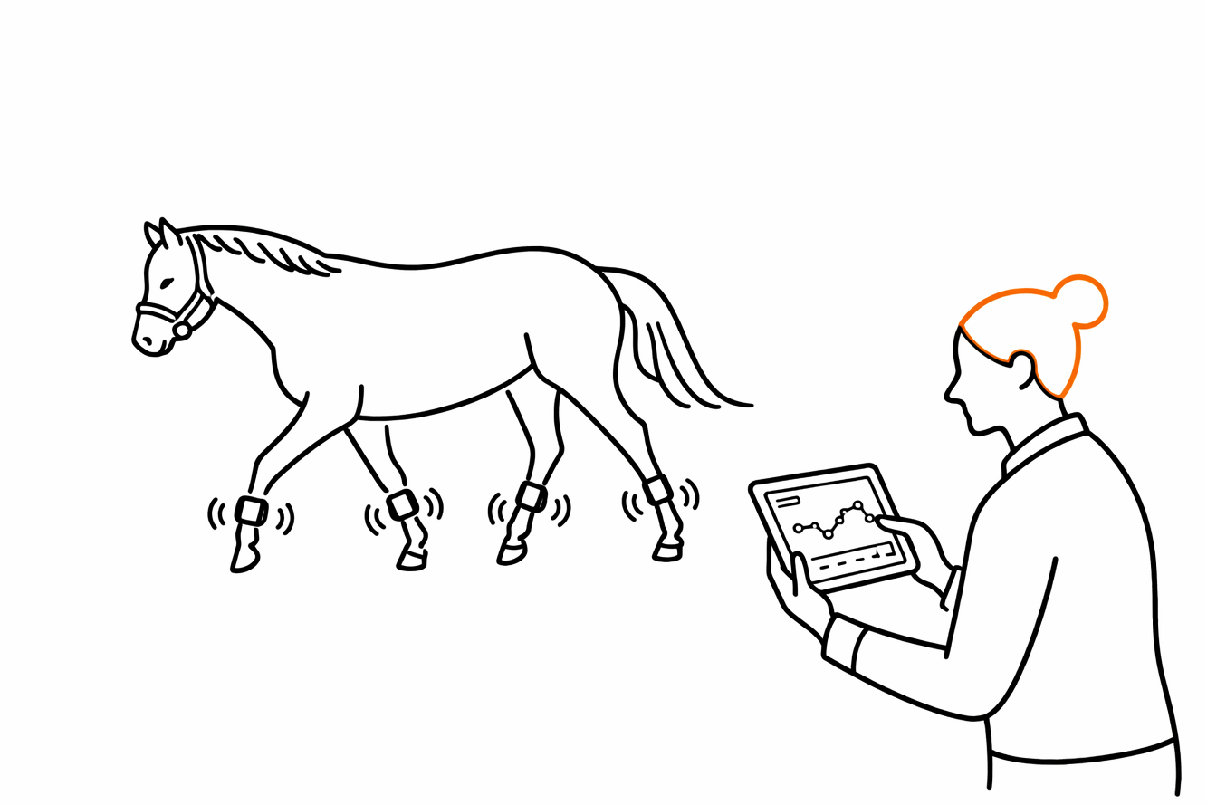 Die Ganganalyse in unserer Pferdereha erfolgt mithilfe moderner, appgesteuerter Sensoren an den Beinen. Sie ermöglicht eine präzise Auswertung von Bewegungsabläufen, Takt, Symmetrie und Belastung und hilft dabei, Lahmheiten frühzeitig zu erkennen sowie Reha- und Trainingspläne gezielt anzupassen.