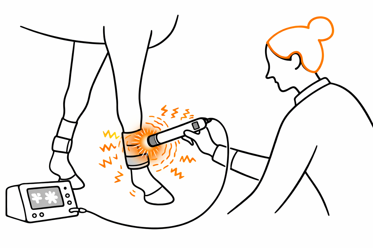 Die Stoßwellentherapie (Radiale Stoßwellentherapie (rESWT oder Pneumatische Druckwellen (Low-Energy-Variante) wird in unserer Reha gezielt bei Sehnen-, Band- und Muskelproblemen eingesetzt. Sie kann die Durchblutung und den Stoffwechsel im Gewebe anregen, die Heilung unterstützen und chronische Prozesse positiv beeinflussen – effektiv, schonend und individuell auf das Pferd abgestimmt.